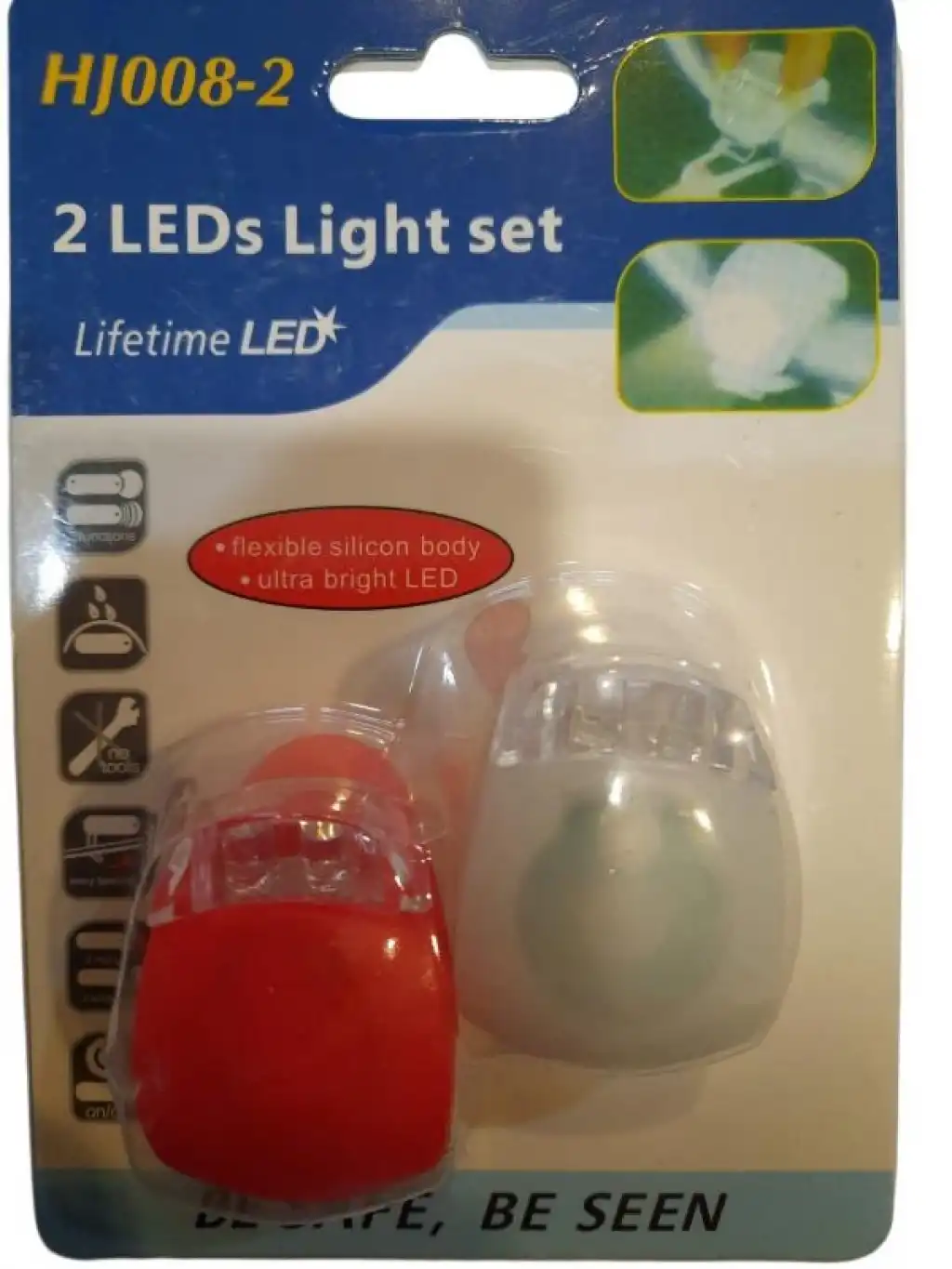 XBYC 6016 HJ008-2 BİSİKLET İKİLİ IŞIK SETİ MAVİ BEYAZ - On - Arka Set. -2 x CR2032 pil. - (a11$ma sliresi: 35 saat, yanIp sonerek: 160 saat. - Materyal: Slikon. - Su geGirmez.